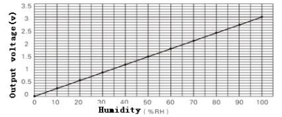 湿度传感器测量范围为 0-100% RH,电压输出与湿度呈线性关系 0.0-3.0 如下图