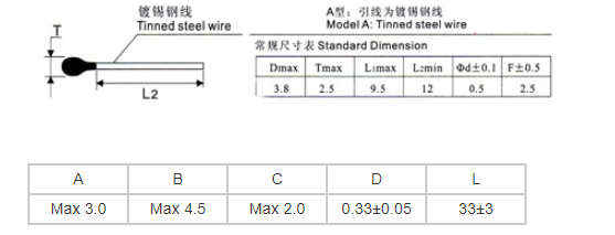MF52环氧头测温NTC热敏电阻尺寸: