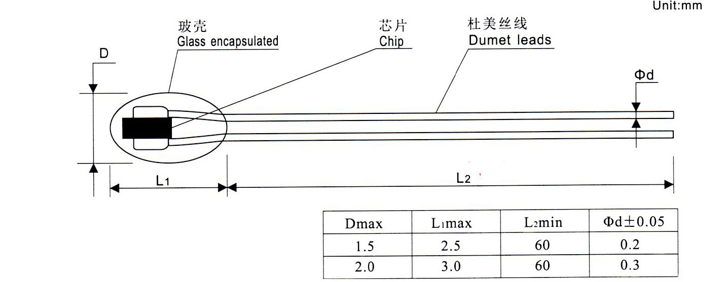 1、玻璃封装,耐热,高度稳定。
